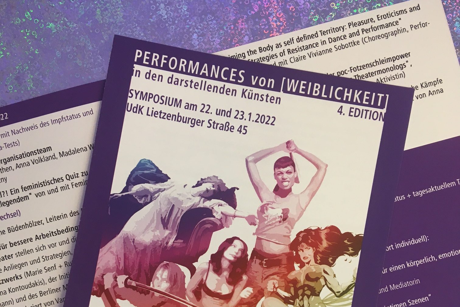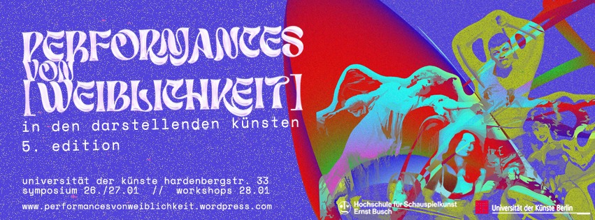 www.performancesvonweiblichkeit.wordpress.com –> queerfeministisches Symposium, das sich mit Fragen der Darstellungsvielfalt von Geschlecht, Konzepten von ‚Weiblichkeit‘ und Arbeitsbedingungen von Frauen* in den darstellenden Künsten auseinandersetzt, aktuelle Probleme benennt, Strukturen befragt und Alternativen diskutiert, künstlerische Positionen vorstellt und einen Raum zum Lernen und Austauschen bietet – seit Januar 2016 alle zwei Jahre in der UdK (seit 2020 in Kooperation mit der HfS Berlin), für Studierende, Lehrende und alle Interessierten. (Kurzdokumentation/“Zusammenfassung“ jeder Ausgabe online.)