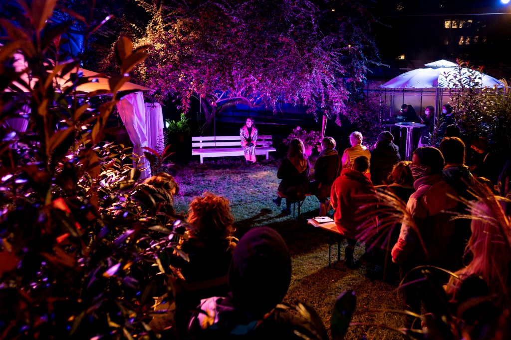 „FEMALE GAZE. Eine queerfeministische Zusammenkunft“ | 10.10.2020, im Rahmen des URBÄNG! Festivals und des Projekts GASTGEBERSCHAFT von Stephanie Thiersch/MOUVOIR im Orangerie Theater Köln | Kuratiert und moderiert von Anna Volkland in Zusammenarbeit mit Stephanie Thiersch | Gäste: Sheena McGrandles, Marie-Zoe Buchholz aka ZOE, Hassan Dib aka Cupcake (Queen of Virginity) und Prof. Dr. Susanne Spindler | Foto: Martin Rottenkolber (Performance „Drag Mythologies: Part IV“ by Cupcake @queenofvirginity)